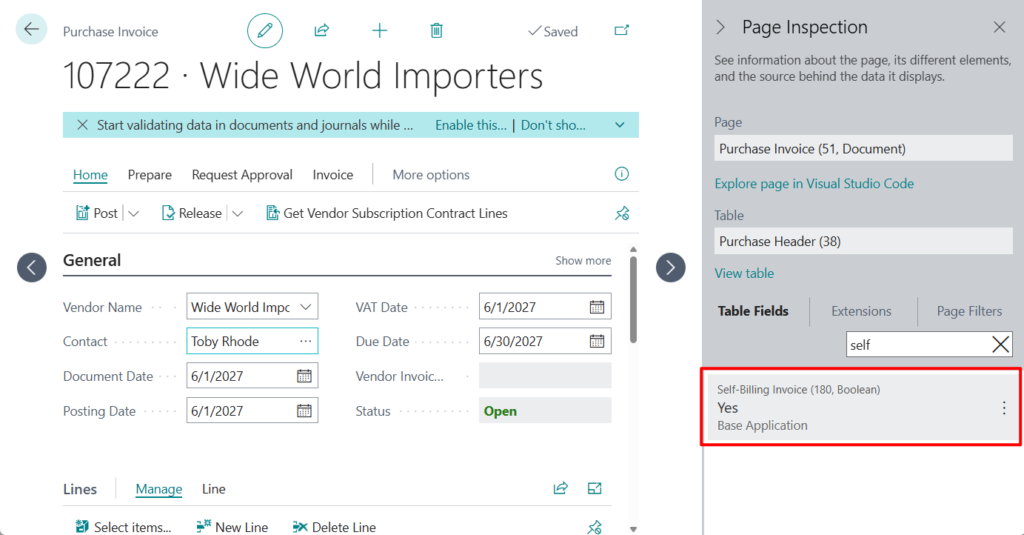 Business Central 2026 release wave 1 (BC28): Use self-billed invoices