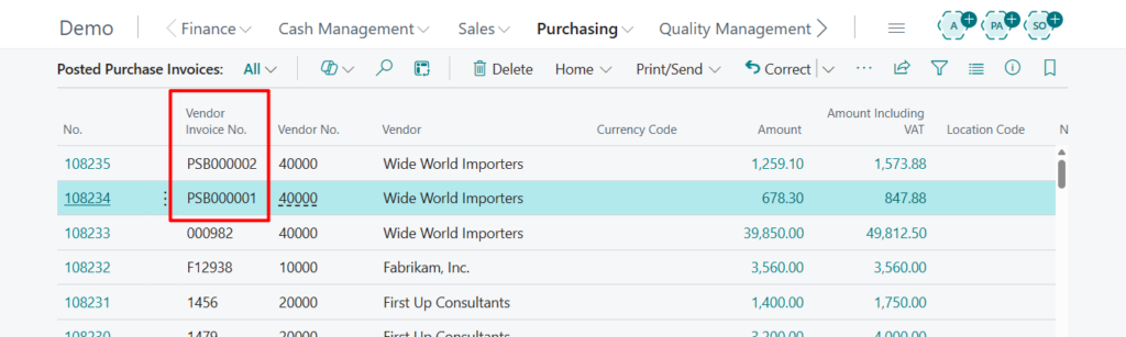 Please note that this is not the number used for Posted Purchase invoices, but rather the Vendor Invoice No. (External Document No.).