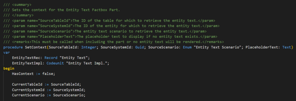 PS: page 2011 “Entity Text Factbox Part” -> procedure SetContext